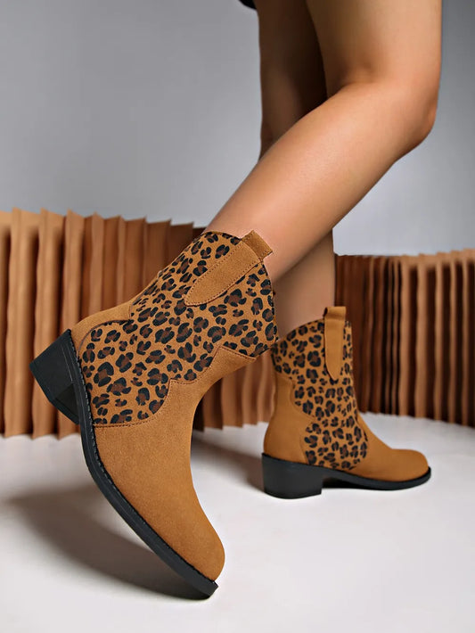 Weeboo Chunky Heel Rhinestone Decor Western Boots