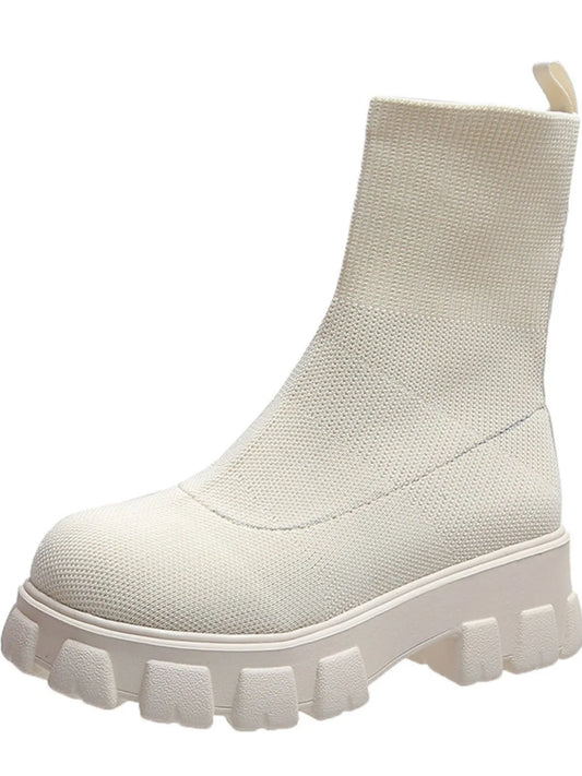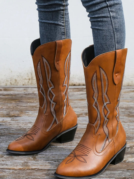 WILD DIVA Embroidered Trim Round Toe Platform Boots