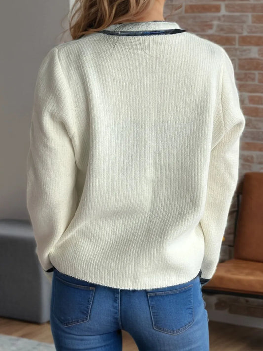 Davi & Dani Flower Contrast Round Neck Long Sleeve Cardigan