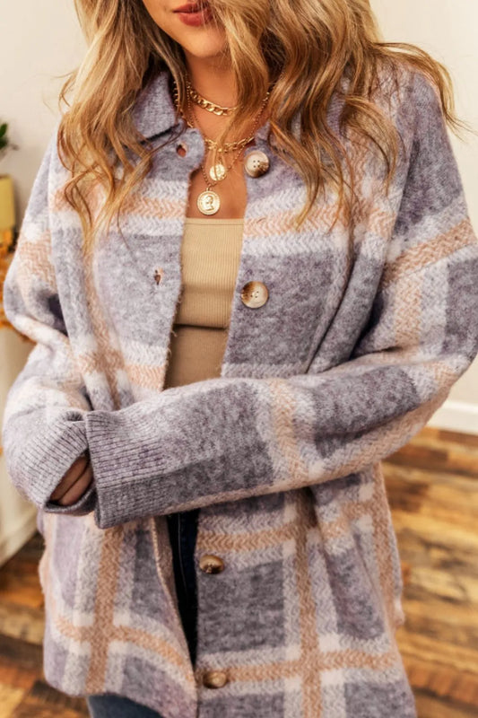 Plaid Button Up Collared Neck Cardigan