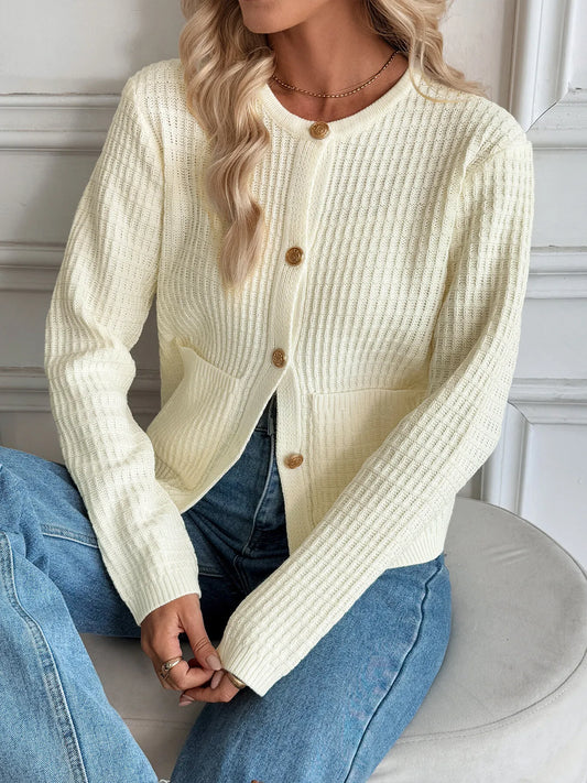 Round Neck Button Up Cardigan with Pockets