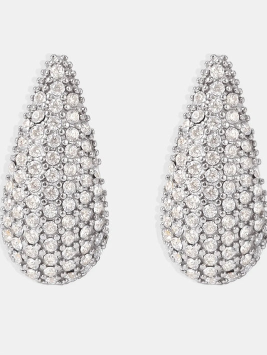 Stainless Steel Inlaid Zircon Teardrop Earrings