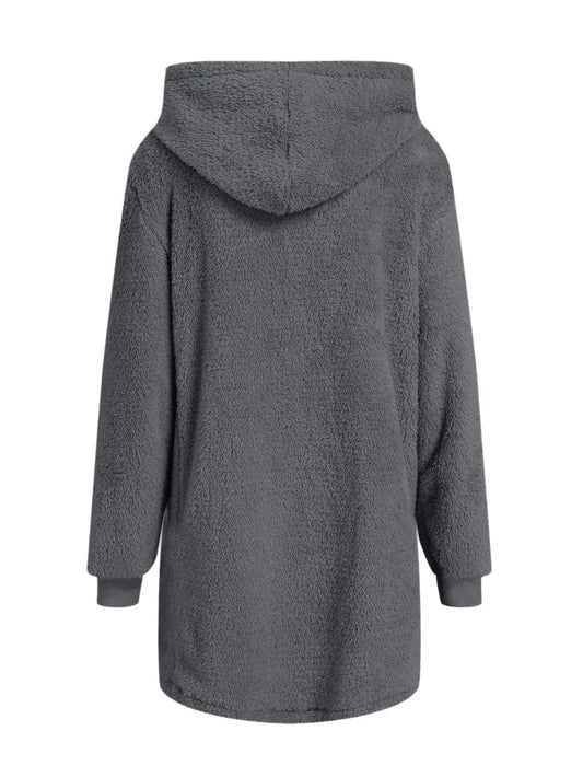 Open Front Long Sleeve Fuzzy Hooded Jacket