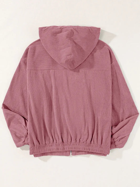 Drawstrig Zip Up Hooded Jacket