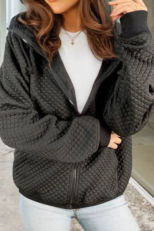 Drawstring Zip Up Long Sleeve Hooded Jacket