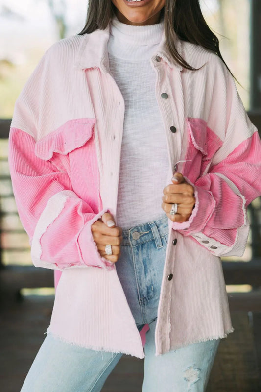 BiBi Fringe Hem Washed Corduroy Button Down Shacket