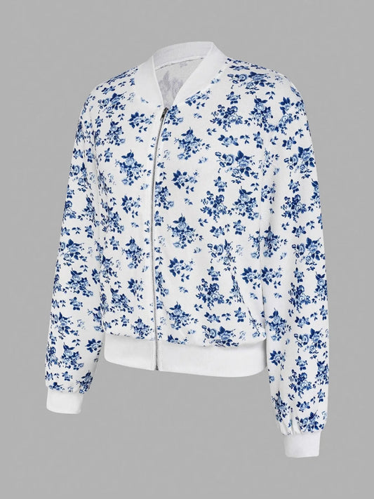 POL Flower Textured Raw Hem Long Sleeve Denim Jacket