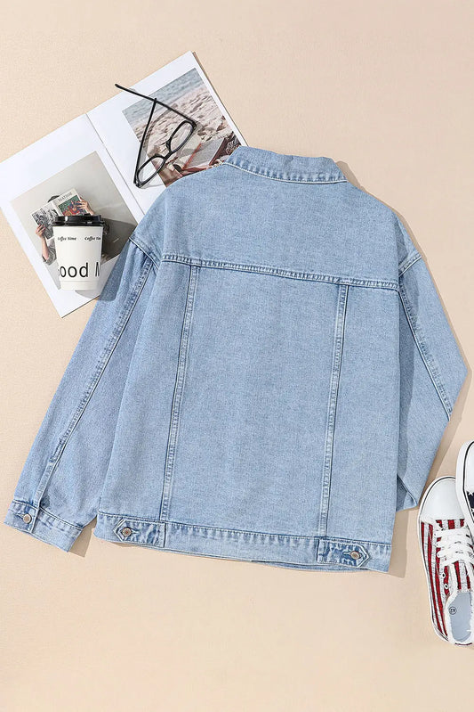 Pocketed Button Up Dropped Shoulder Denim Jacket