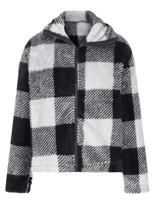 Full Size Plaid Zip Up Long Sleeve Jacket