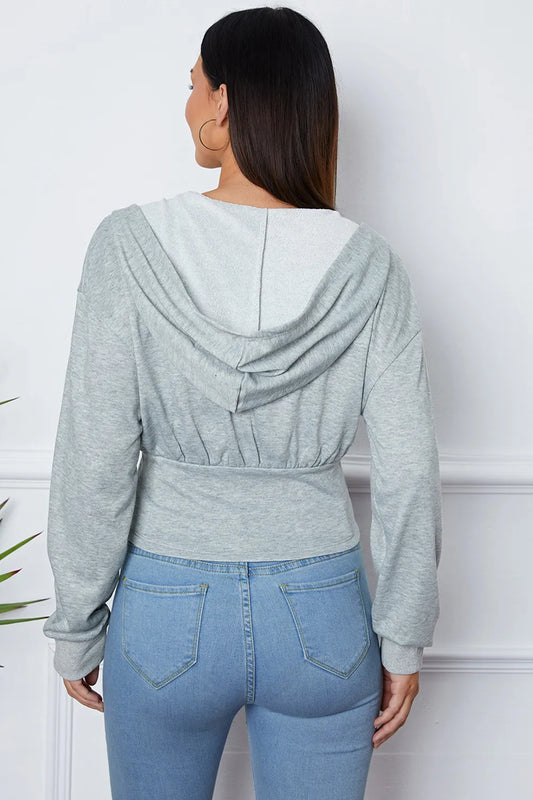 Geometric Zip Up Long Sleeve Hooded Jacket
