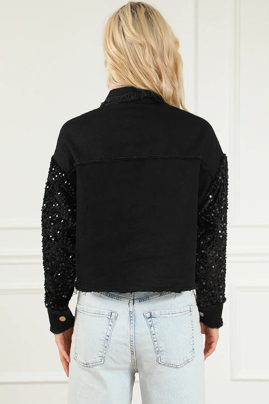 Baeful Leopard Floral Distressed Raw Hem Denim Jacket