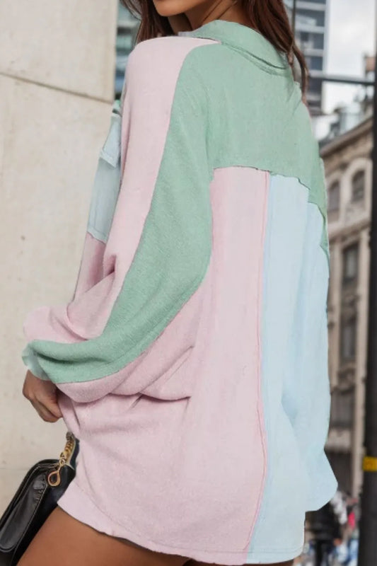 Contrast Pocketed Button Up Long Sleeve Shacket