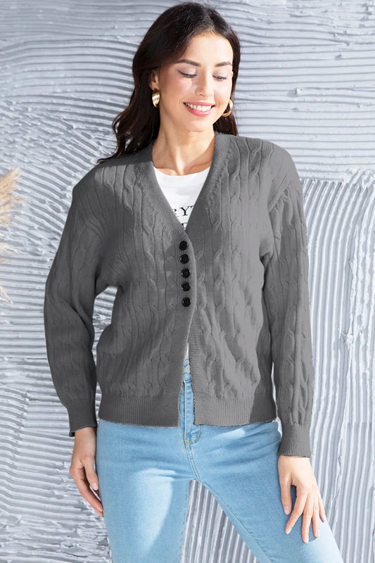 Cable-Knit Button Up Dropped Shoulder Cardigan
