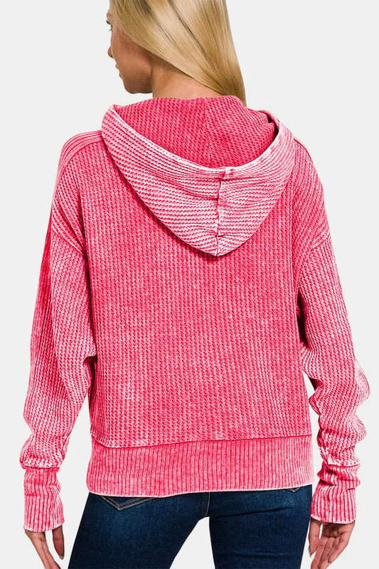 Waffle-Knit Pocketed Zip Up Hooded Jacket