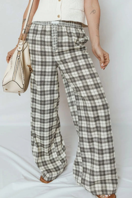 Full Size Side Decor Button Casual Wide Leg Pants Plus Size
