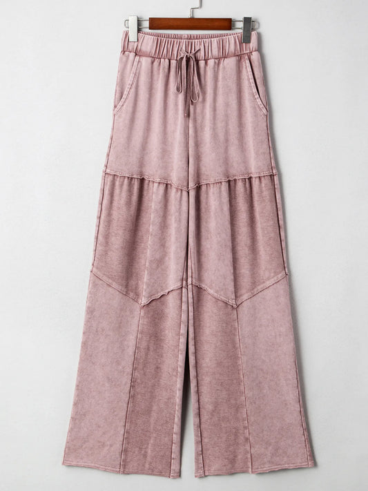 Mineral Wash Tiered Wide Leg Patchwork Drawstring Pants