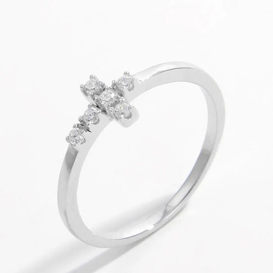 925 Sterling Silver Zircon Cross Ring
