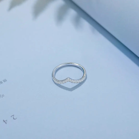 V Shape Inlaid Zircon 925 Sterling Silver Ring