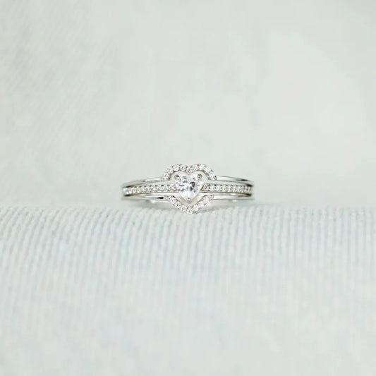 925 Sterling Silver Inlaid Zircon Heart Ring