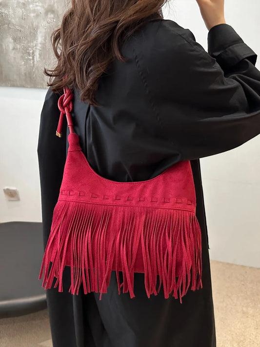 Vendor:TrendsiFringe Solid Color Shoulder Bag