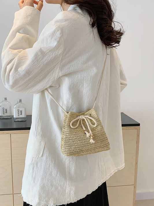 Vendor:TrendsiStraw Braided Drawstring Bucket Bag