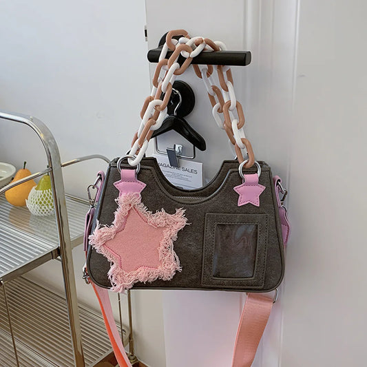 Star Patch Shoulder Bag with Chunky Chain