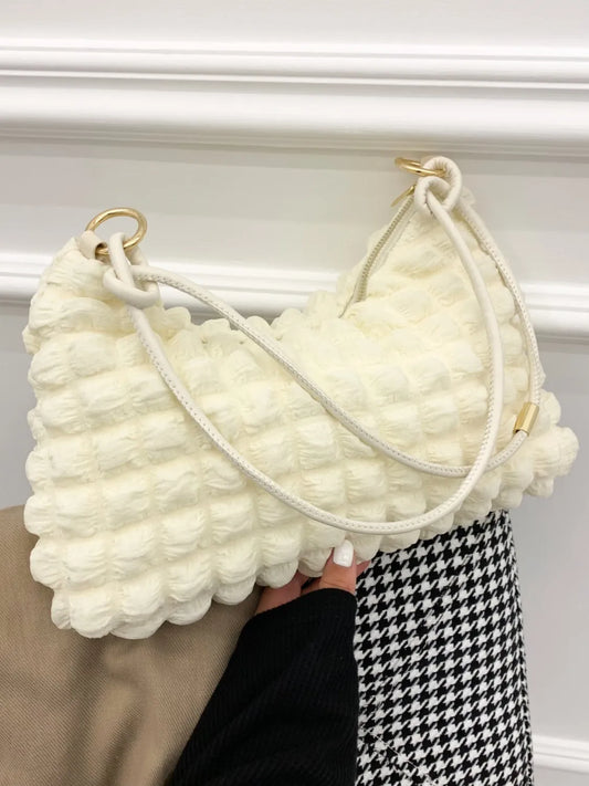 Bubble Texture Ruched Strap Quilted Shoulder Bag