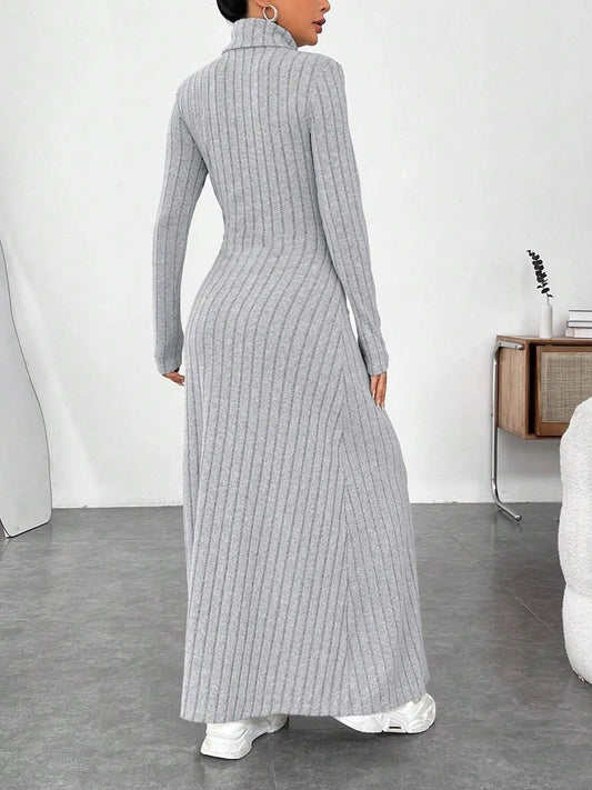 Ribbed Turtleneck Long Sleeve Maxi Knit Dress