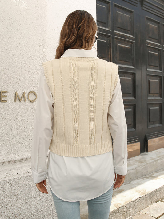 V-Neck Drop Shoulder Long Sleeve Sweater