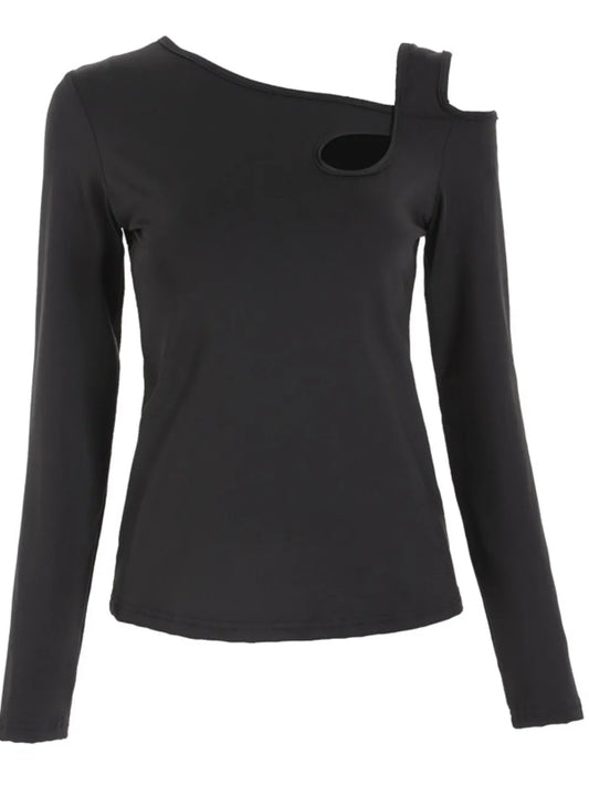 Cutout Asymmetrical Neck Long Sleeve T-Shirt