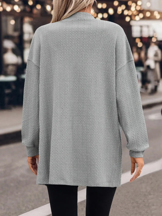 Textured Button Down V-Neck Long Sleeve Cardigan