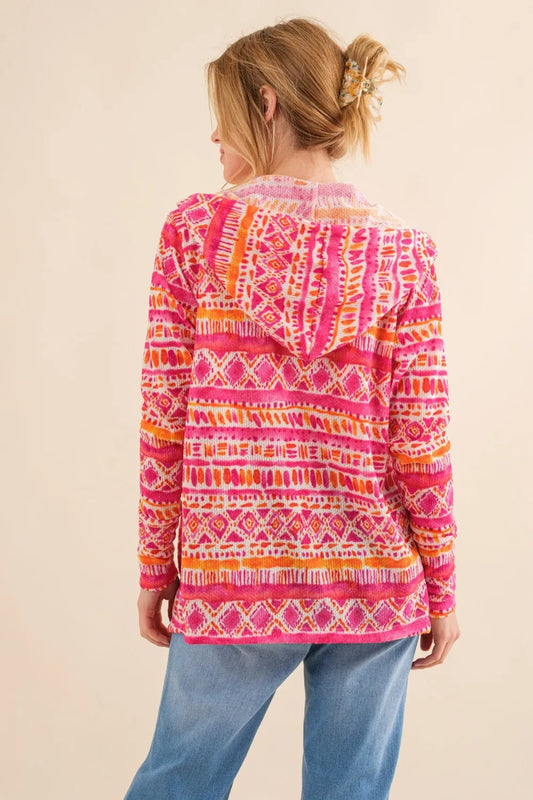 And The Why Full Size Printed Thermal Hooded Open Front Cardigan