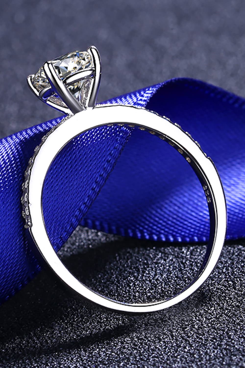 1 Carat Moissanite Rhodium-Plated Side Stone Ring