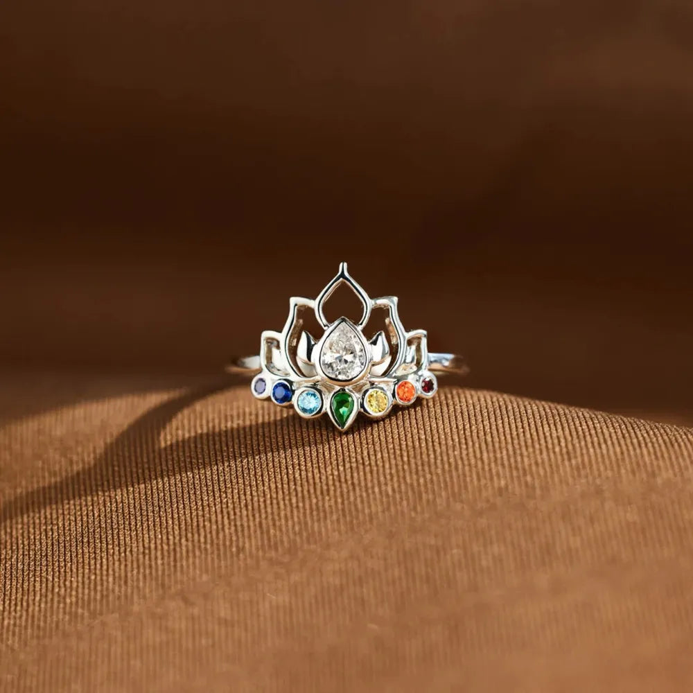 925 Sterling Silver Inlaid Zircon Lotus Shape Ring
