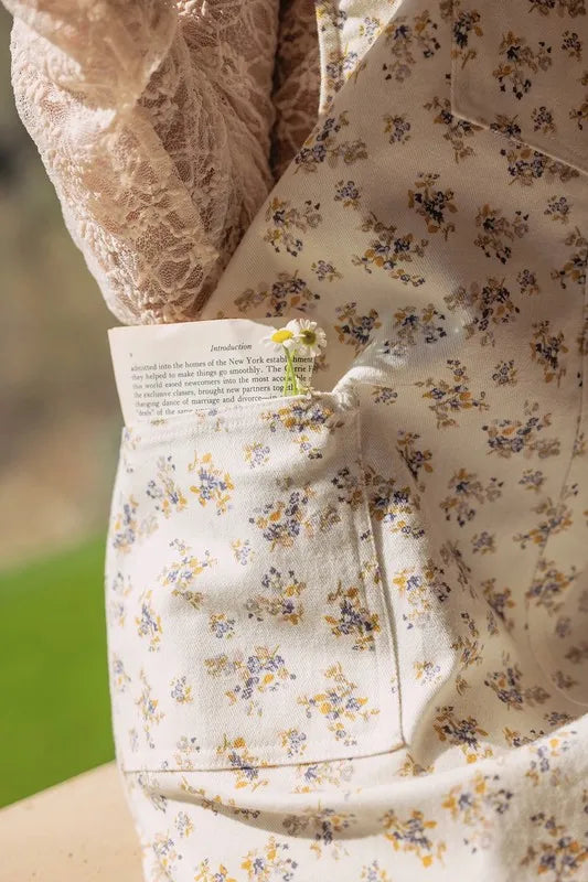 Annie Wear Stretch Ditsy Print Denim Overall Mini Dress