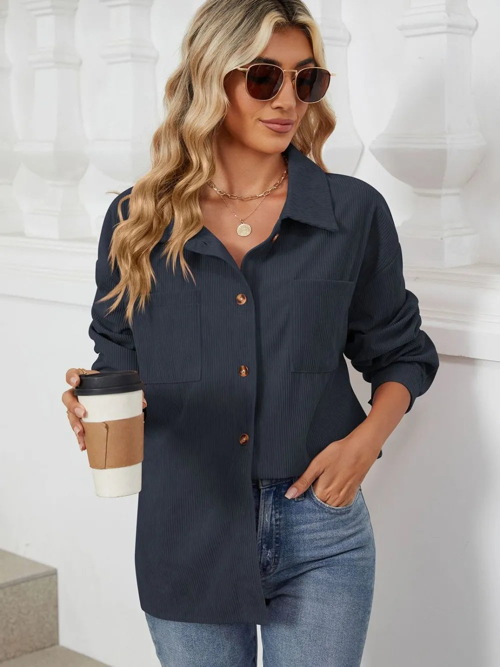 Button Up Dropped Shoulder Long Sleeve Outerwear