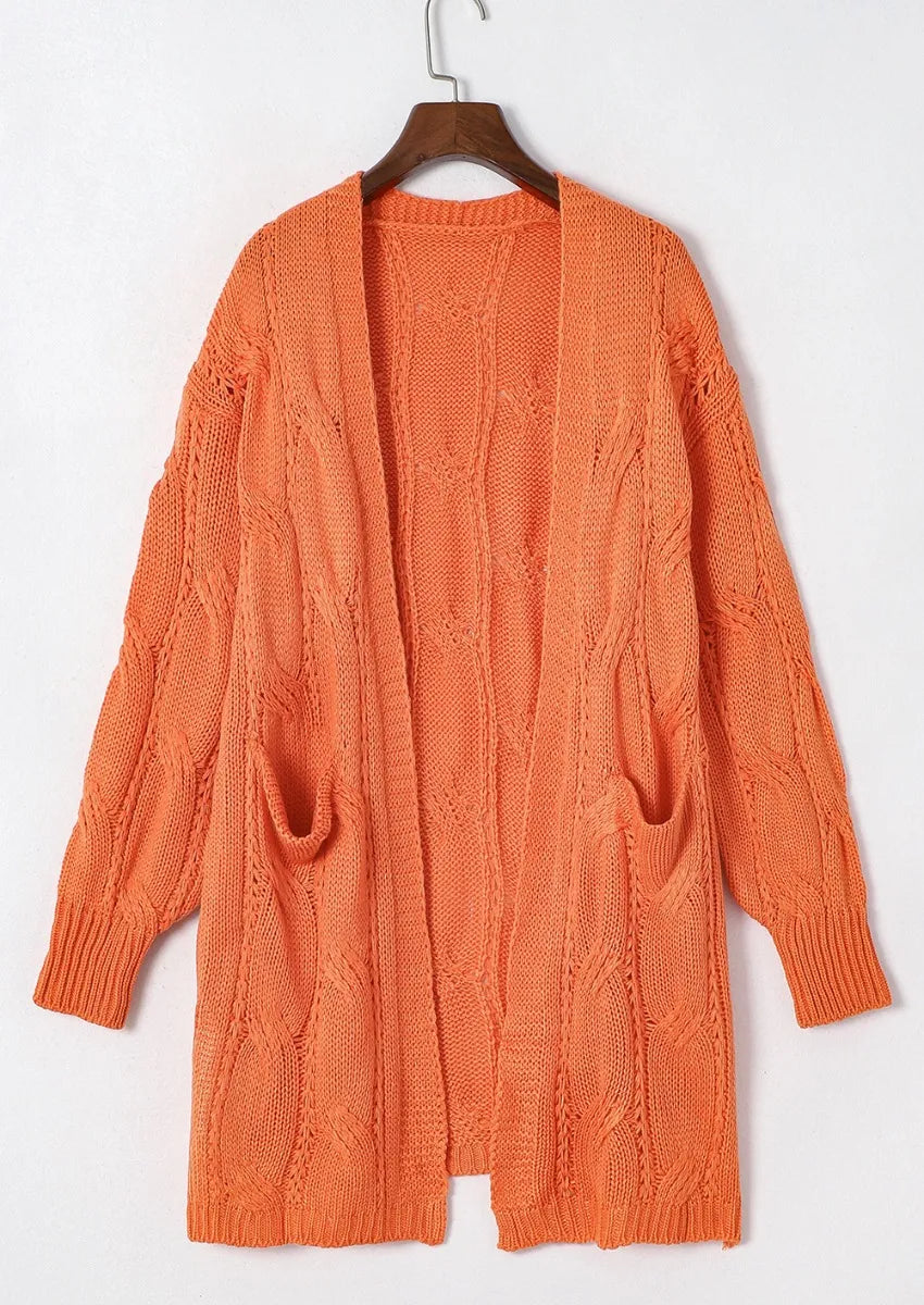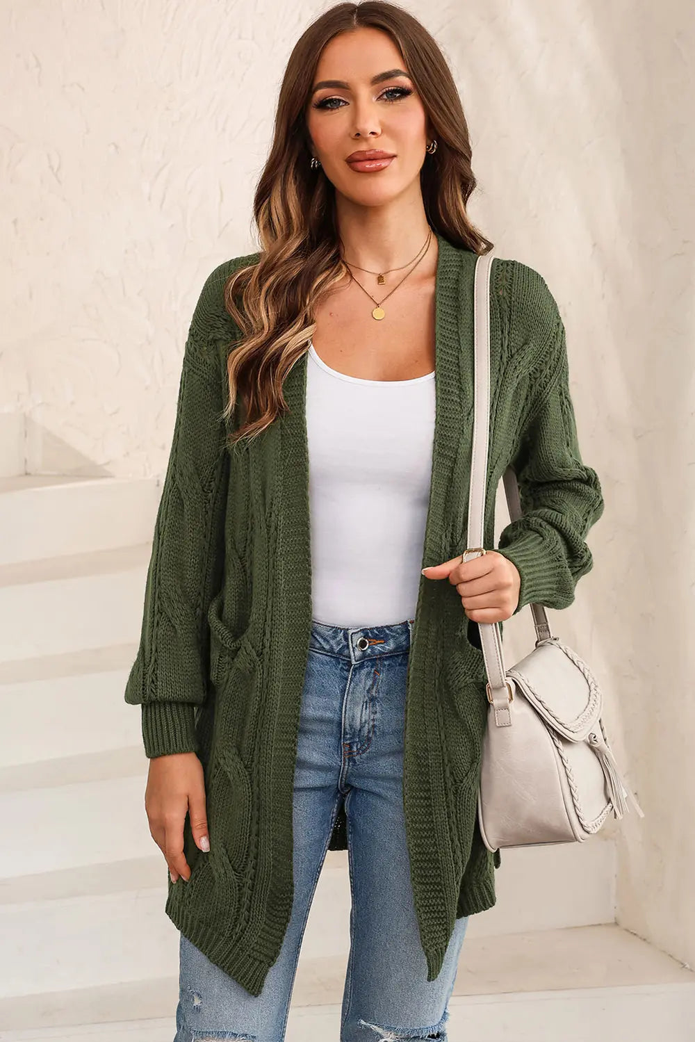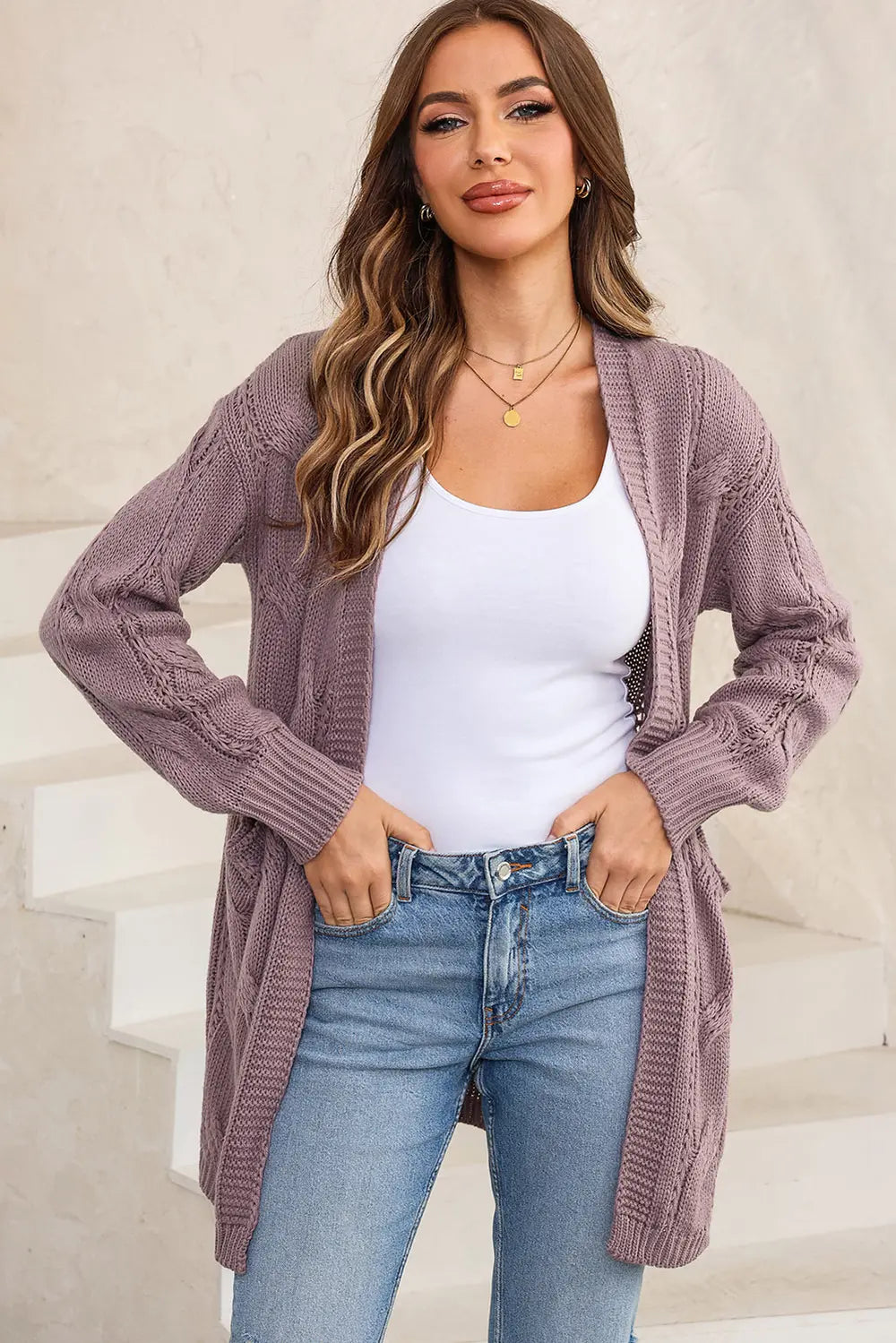 Cable-Knit Dropped Shoulder Slit Cardigan