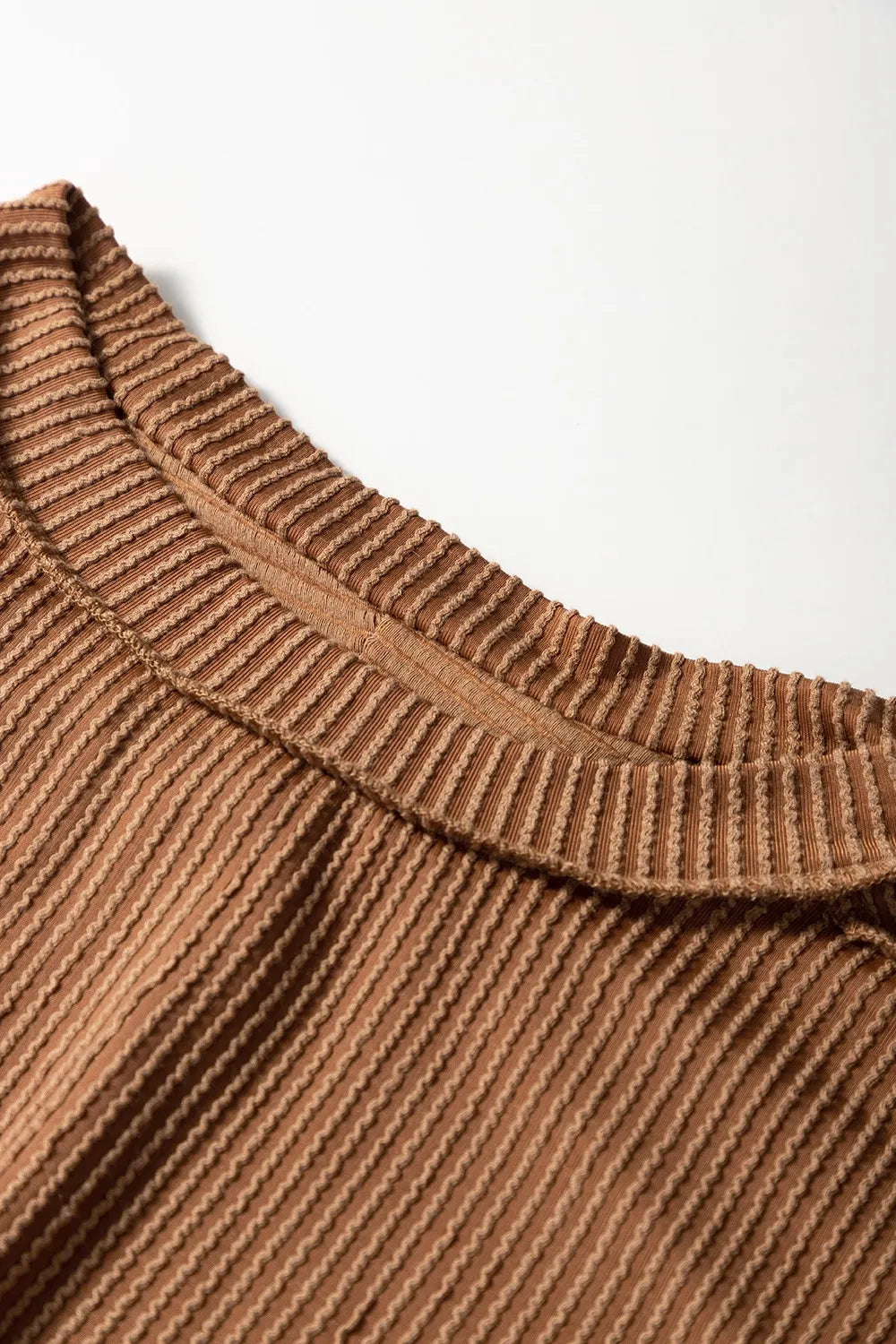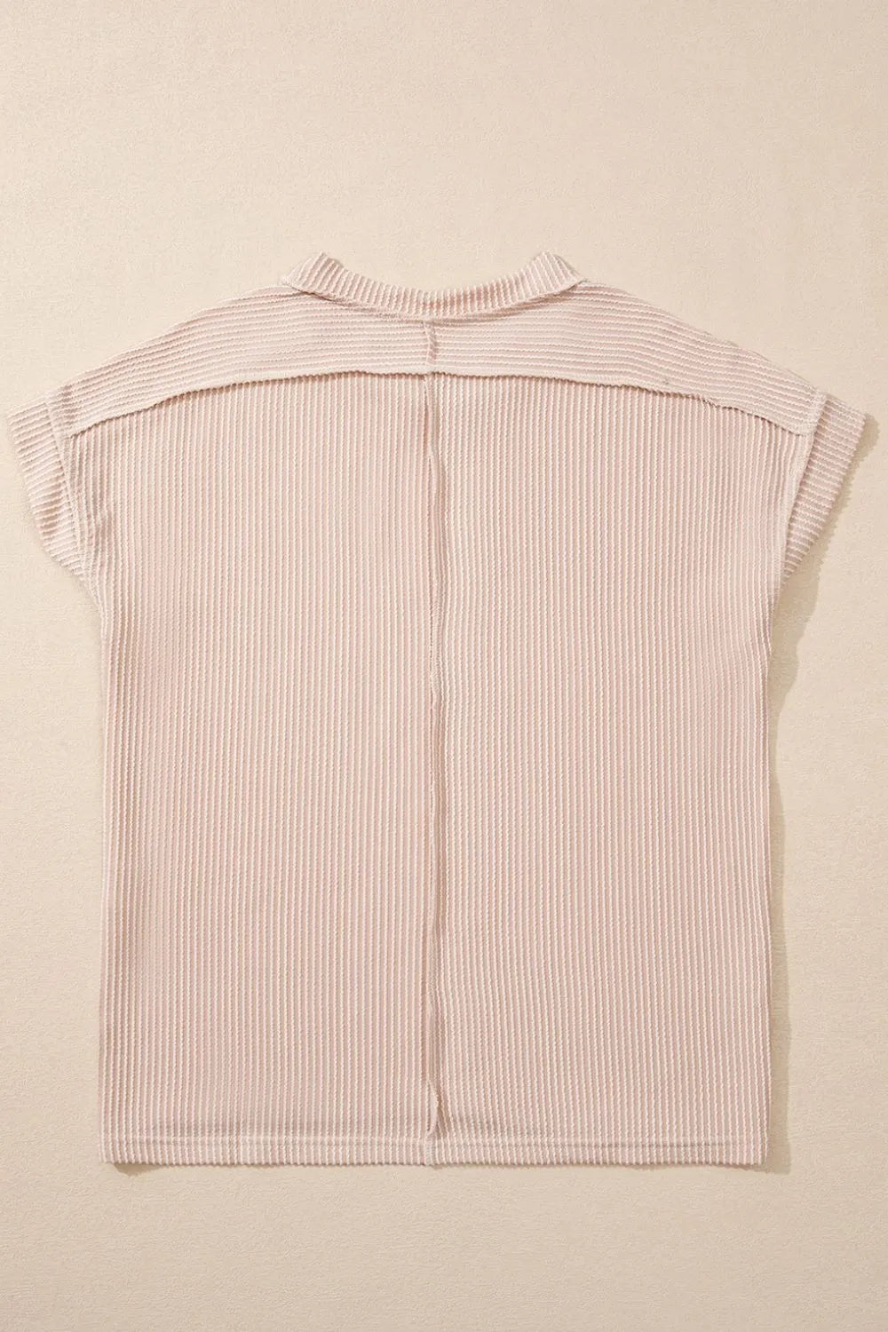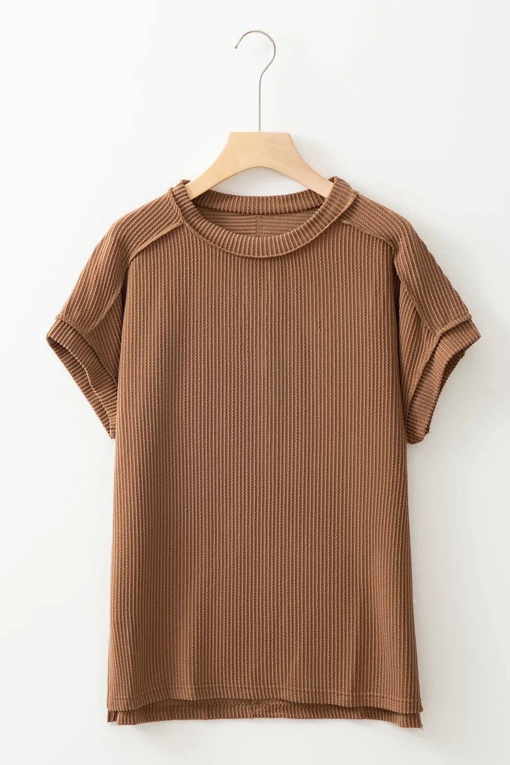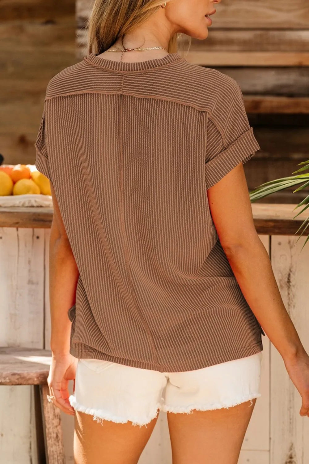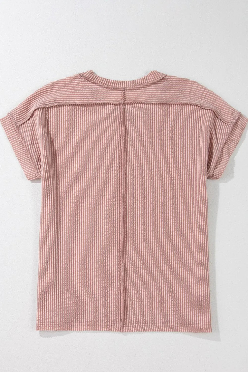 Casual Ribbed Short Sleeve Round Neck T-Shirt