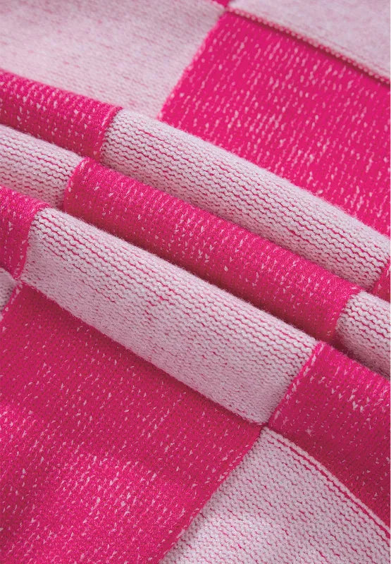 Checkered V-Neck Long Sleeve Cardigan