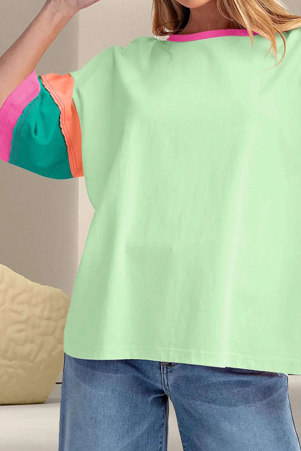 Color Block Round Neck Half Sleeve...