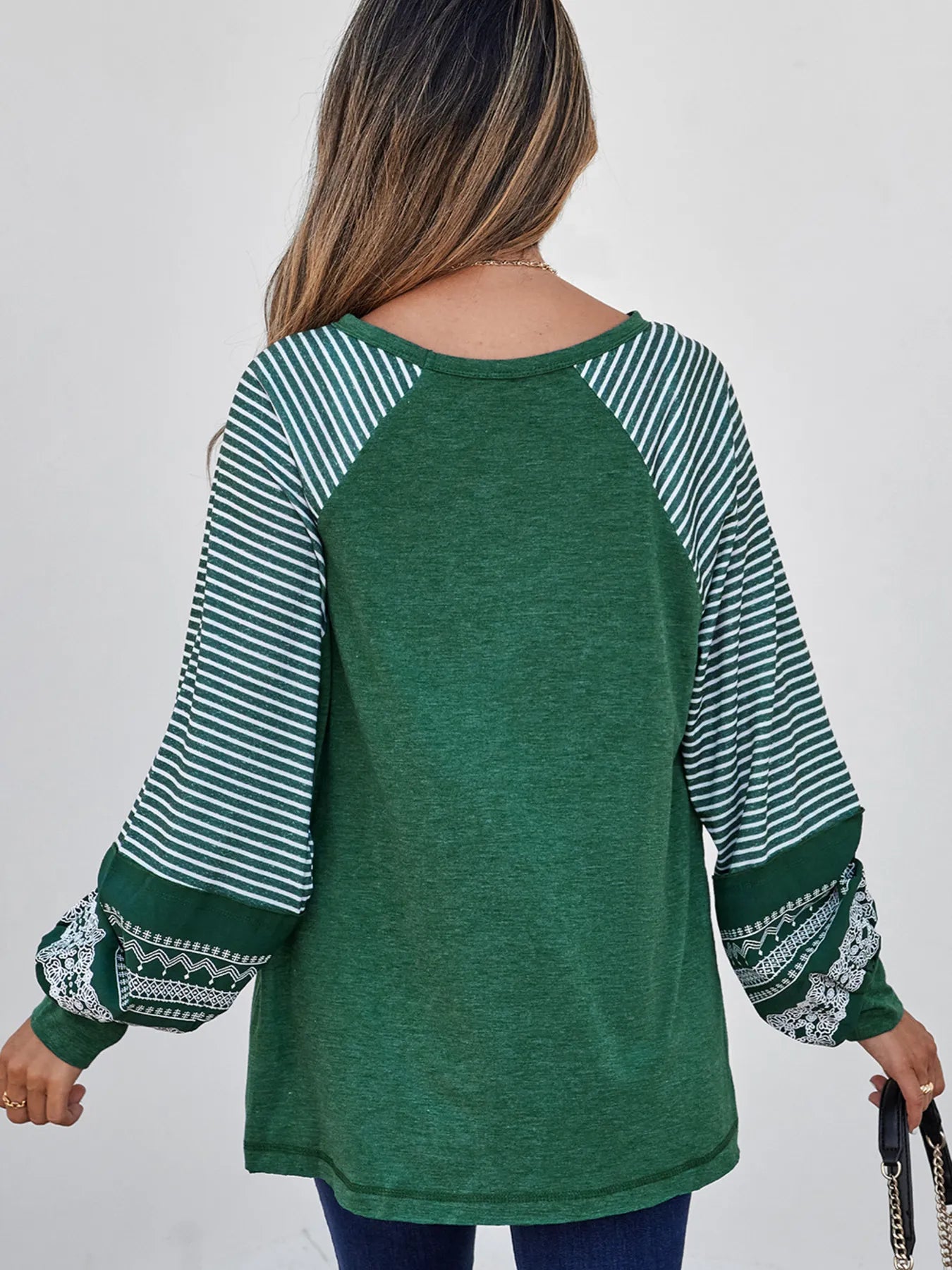 Contrast Print Striped Raglan Long Sleeve Loose Top