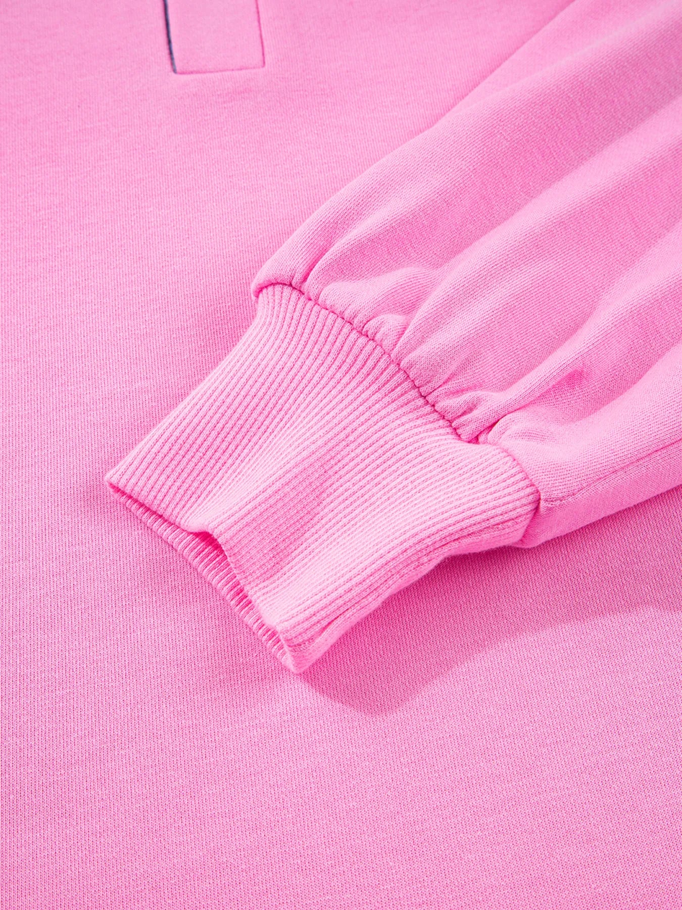 Contrast Striped Collar Patchwork Puff Sleeve...