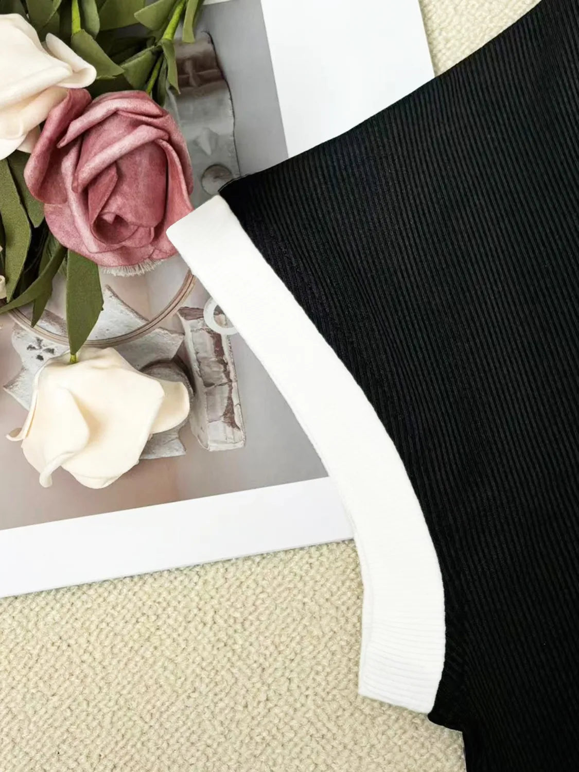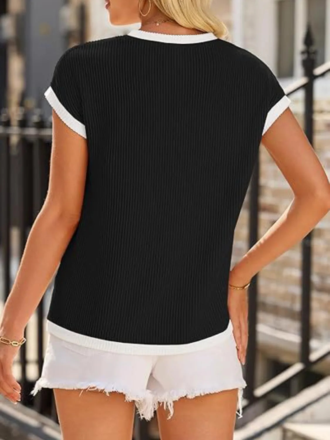 Contrast Trim Round Neck Cap Sleeve Top