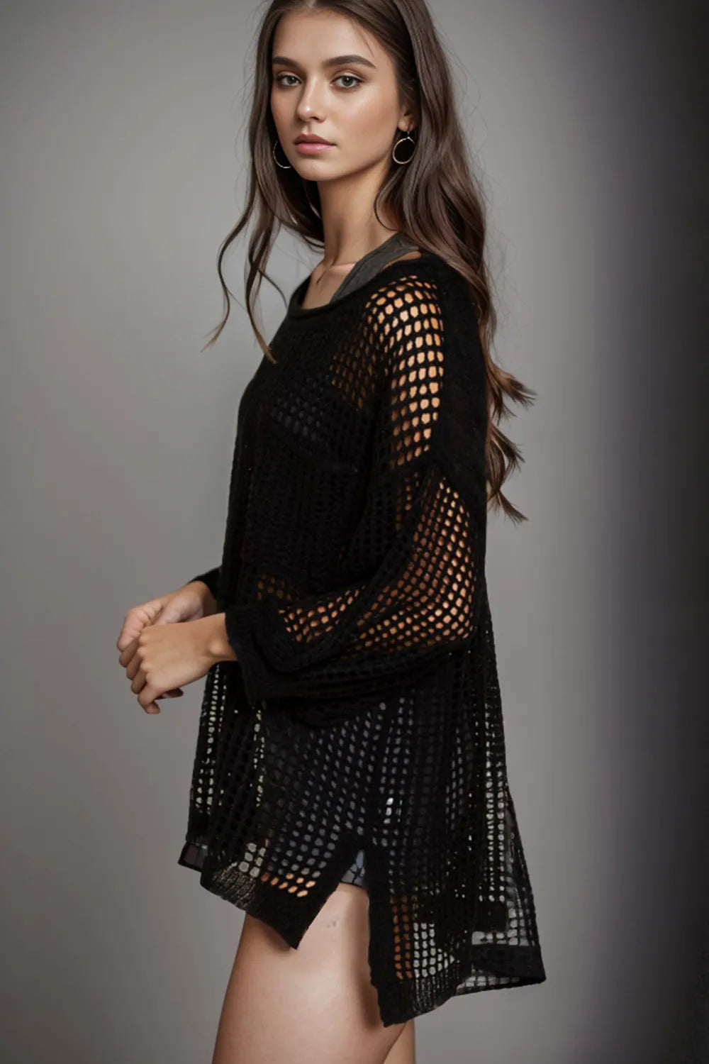 Cutout Boat Neck Dropped Shoulder Cover Up