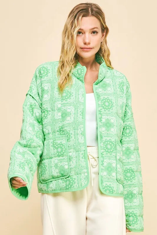 Davi & Dani Vintage Print Open Front Jacket with Pockets