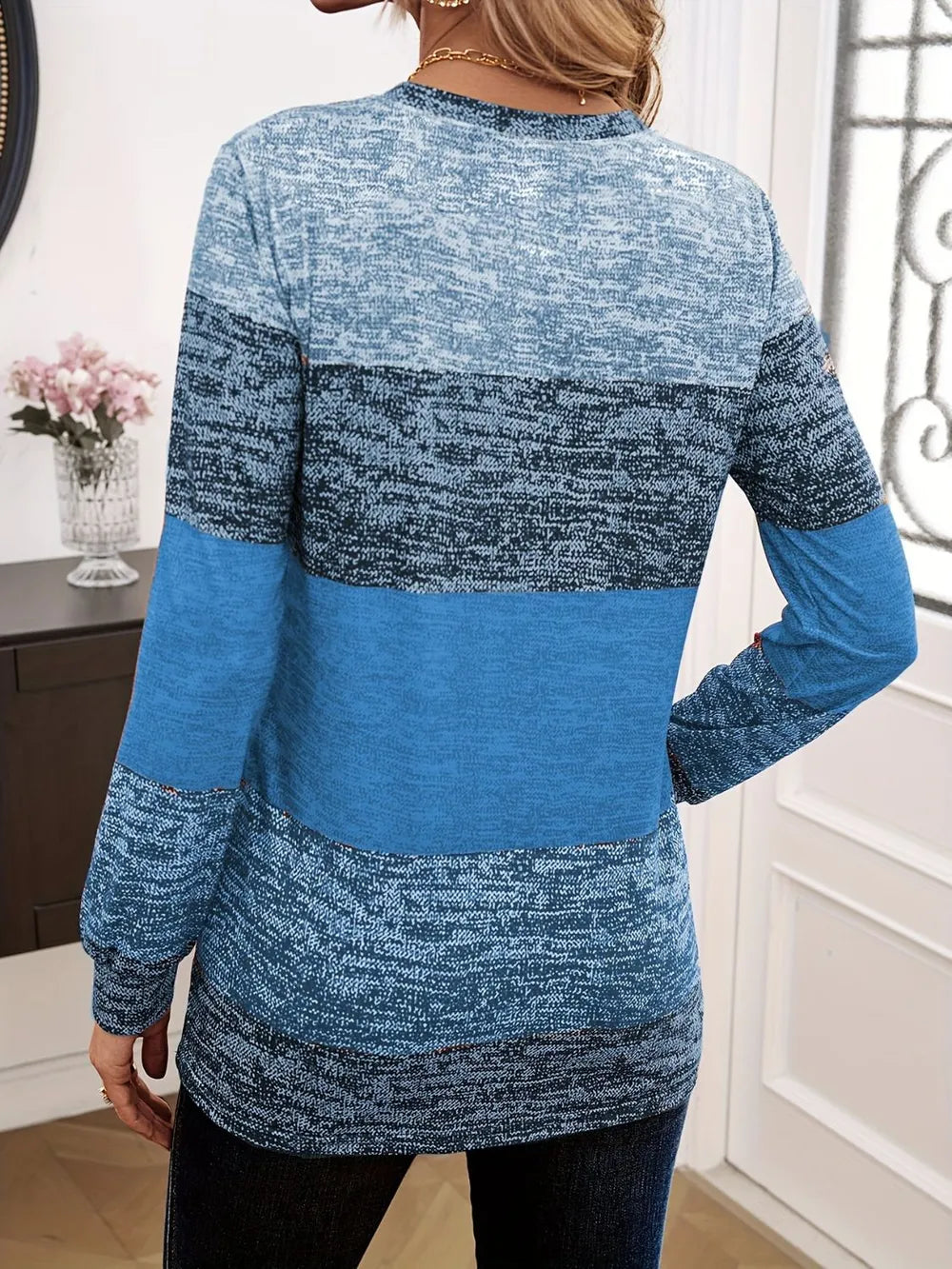 Decorative Button Contrast Round Neck Long Sleeve T-Shirt
