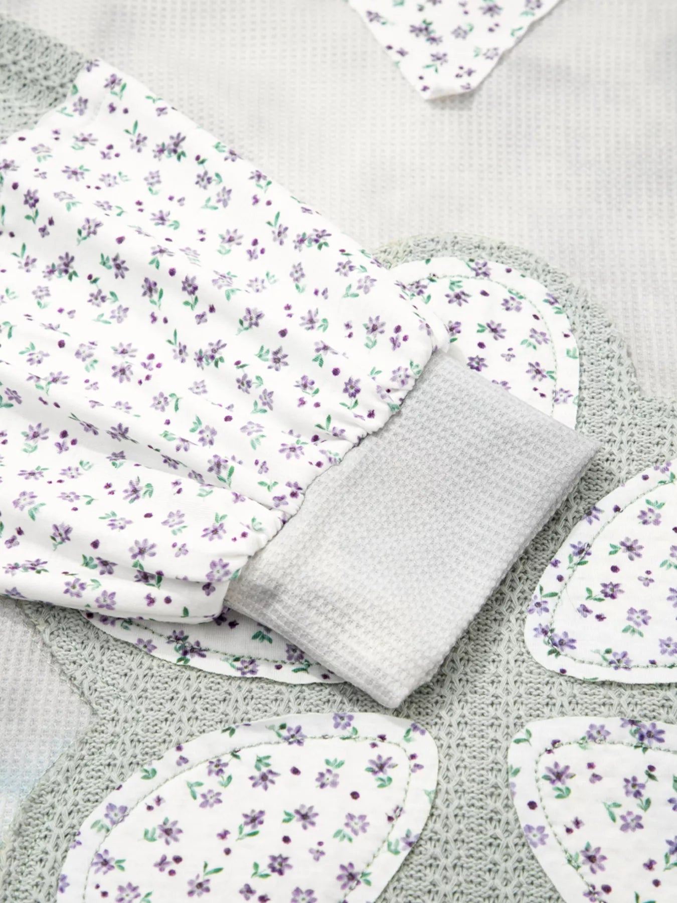 Floral Patched Waffle Textured V Neck...