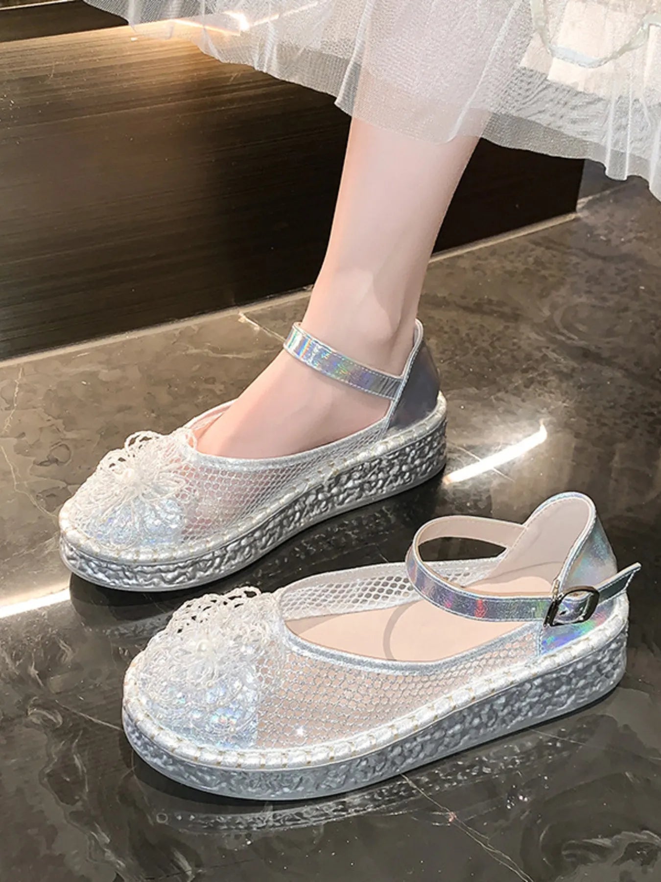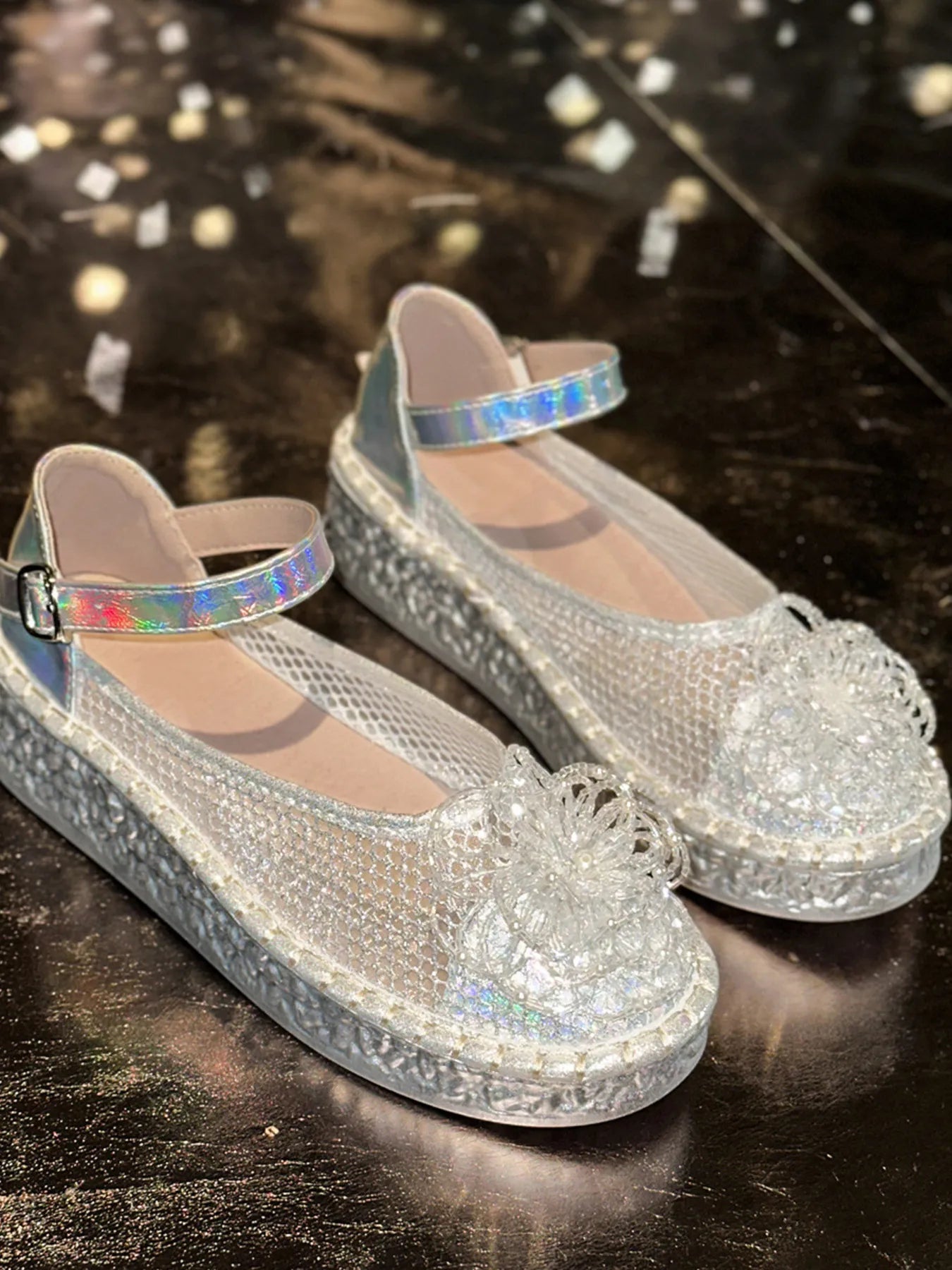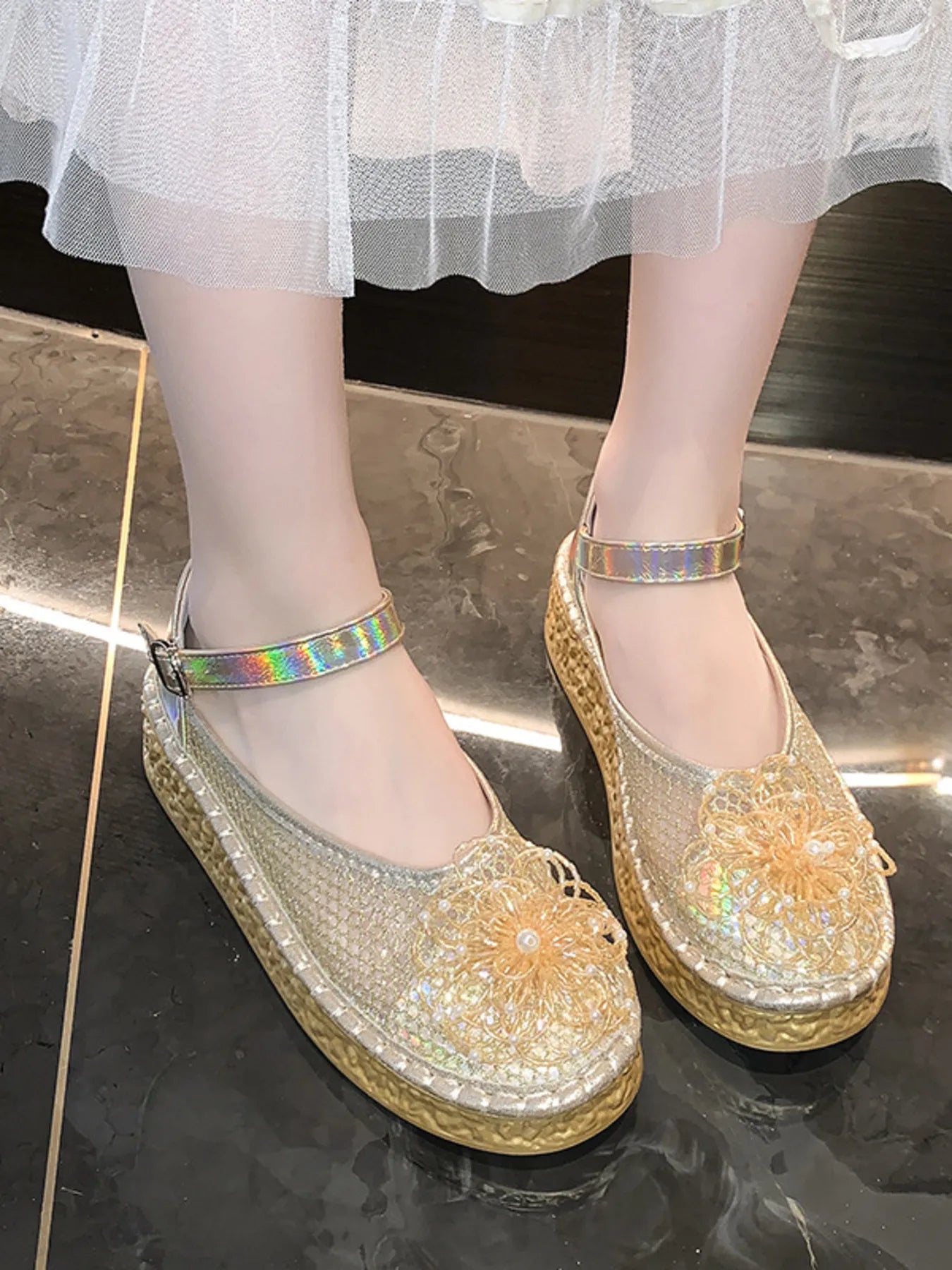 Flower Round Toe Platform Slip-Ons