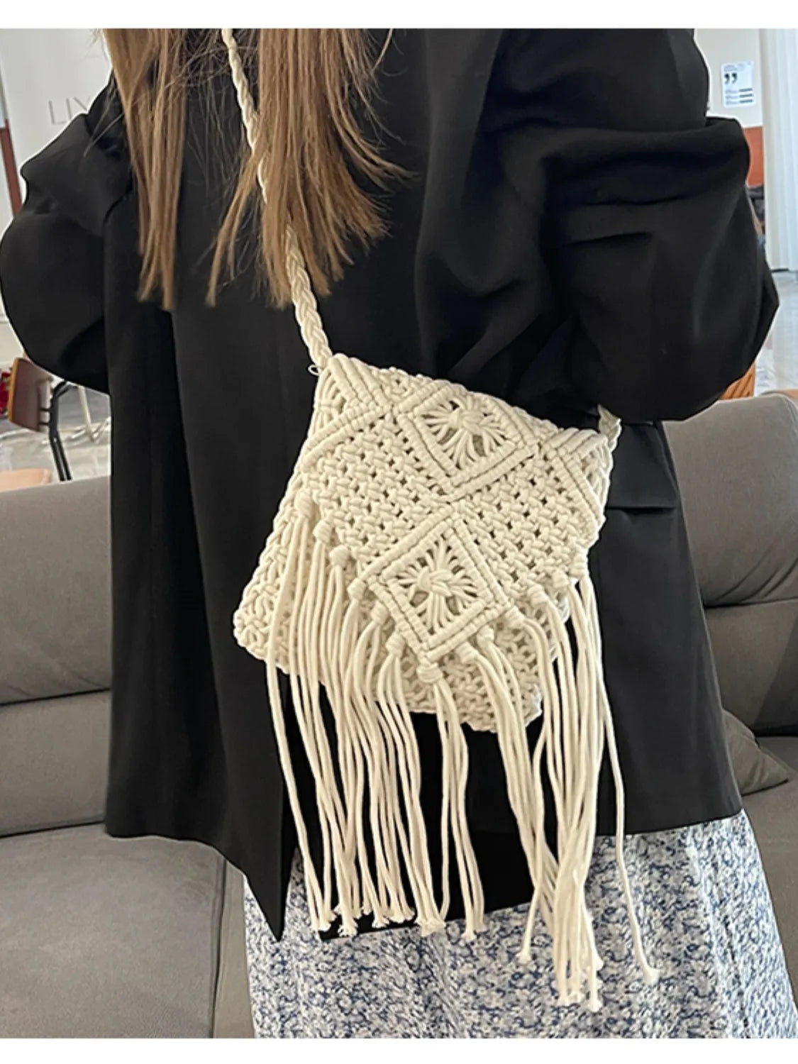 Fringe Woven Crossbody Bag