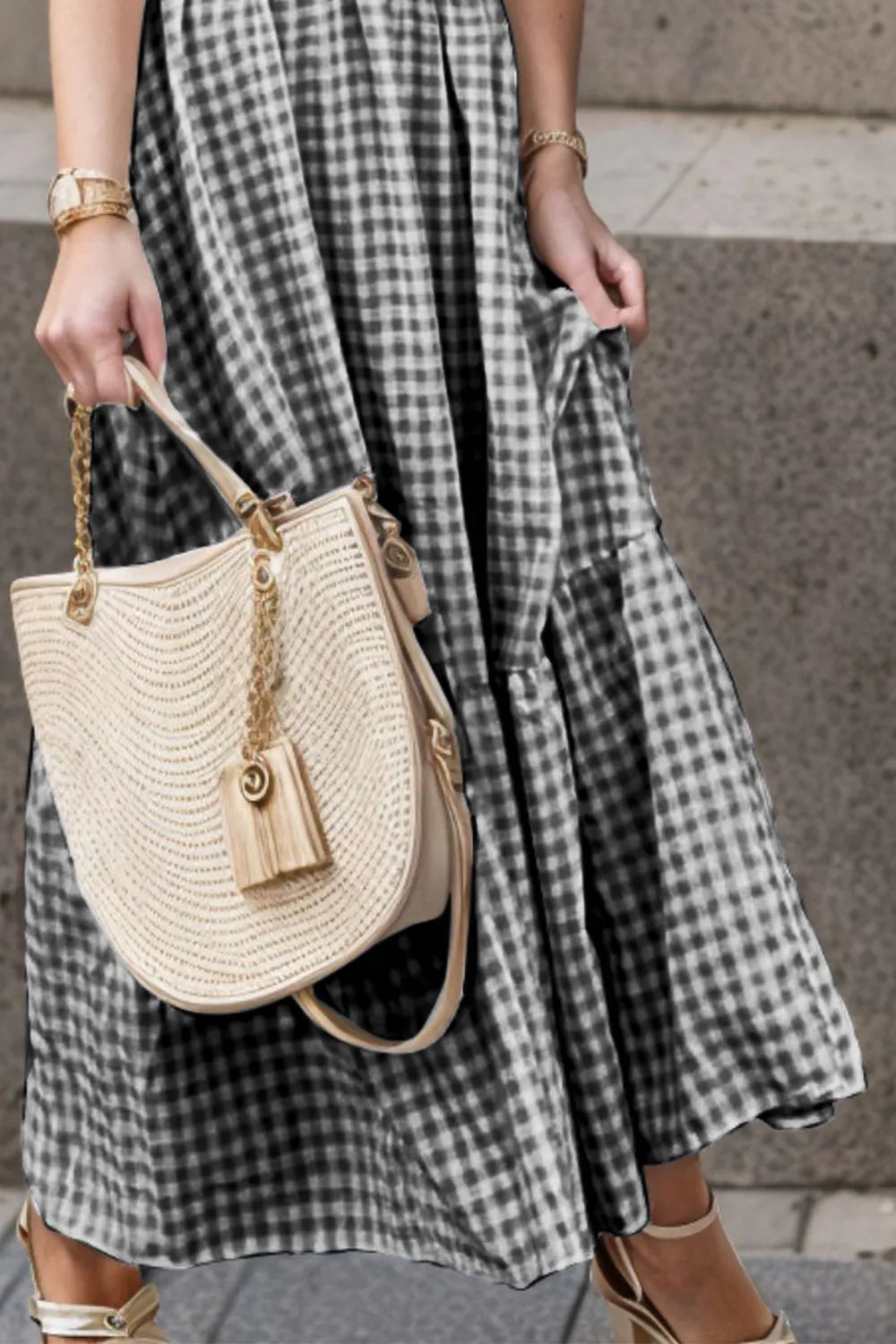 Full Size Smocked Ruffled Plaid Ruffle...